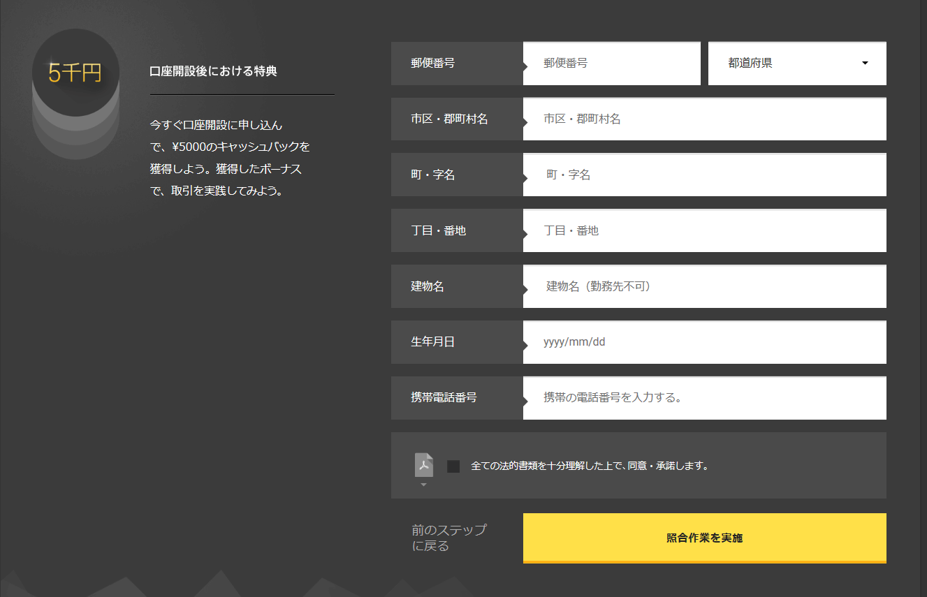 全て入力できたら、「全ての法的書類を十分理解した上で同意・承諾します」にチェックし、