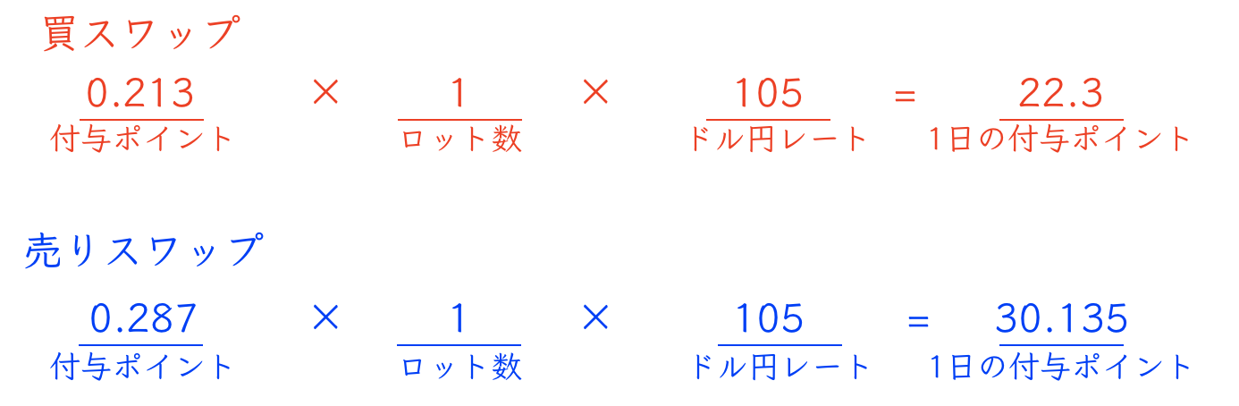 上記の計算から、売買合わせて1日あたり52円ほどのスワップポイントを得られることが分かりました。